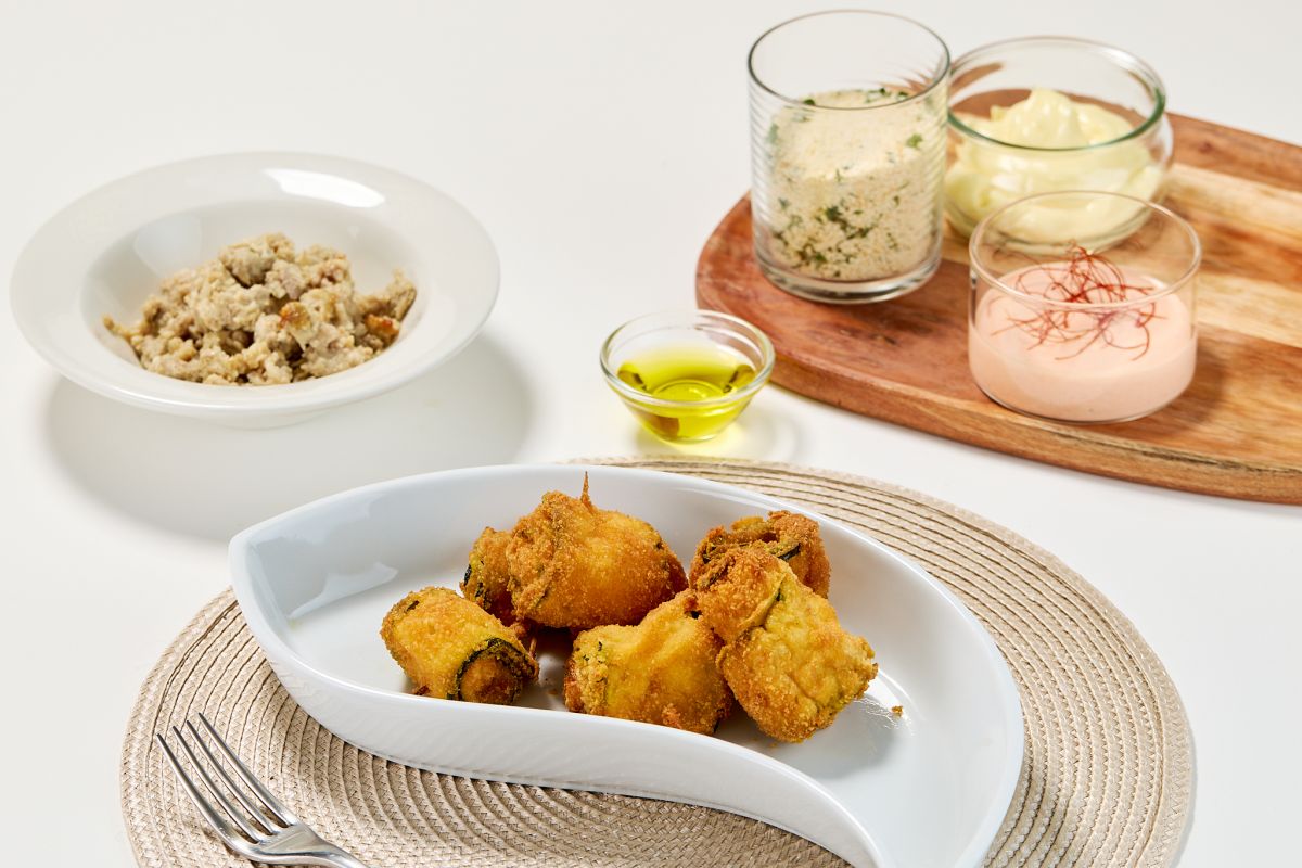 Gli involtini di zucchina e salsiccia sono un antipasto che richiamano le tradizioni culinarie dell'Italia meridionale, gustosi e croccanti, realizzati a mano dai nostri chef avvolgendo la salsiccia in fettine sottili di zucchina, poi panati e fritti fino a ottenere una doratura perfetta. Ideali per dare un tocco rustico e saporito agli aperitivi o nei buffet.