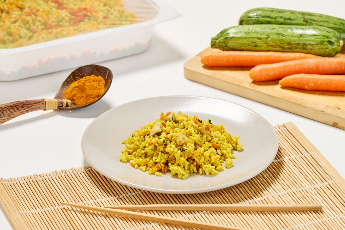 Il riso Thai all'indiana è un piatto tipico orientale, dal sapore aromatico e speziato, preparato con riso fragrante, carote, zucchine, zenzero fresco e un mix di spezie. Ricco di sapori e profumi esotici, è perfetto per chi ama la cucina etnica e i piatti dal carattere deciso. Questo piatto fa parte della nostra linea di piatti etnici.